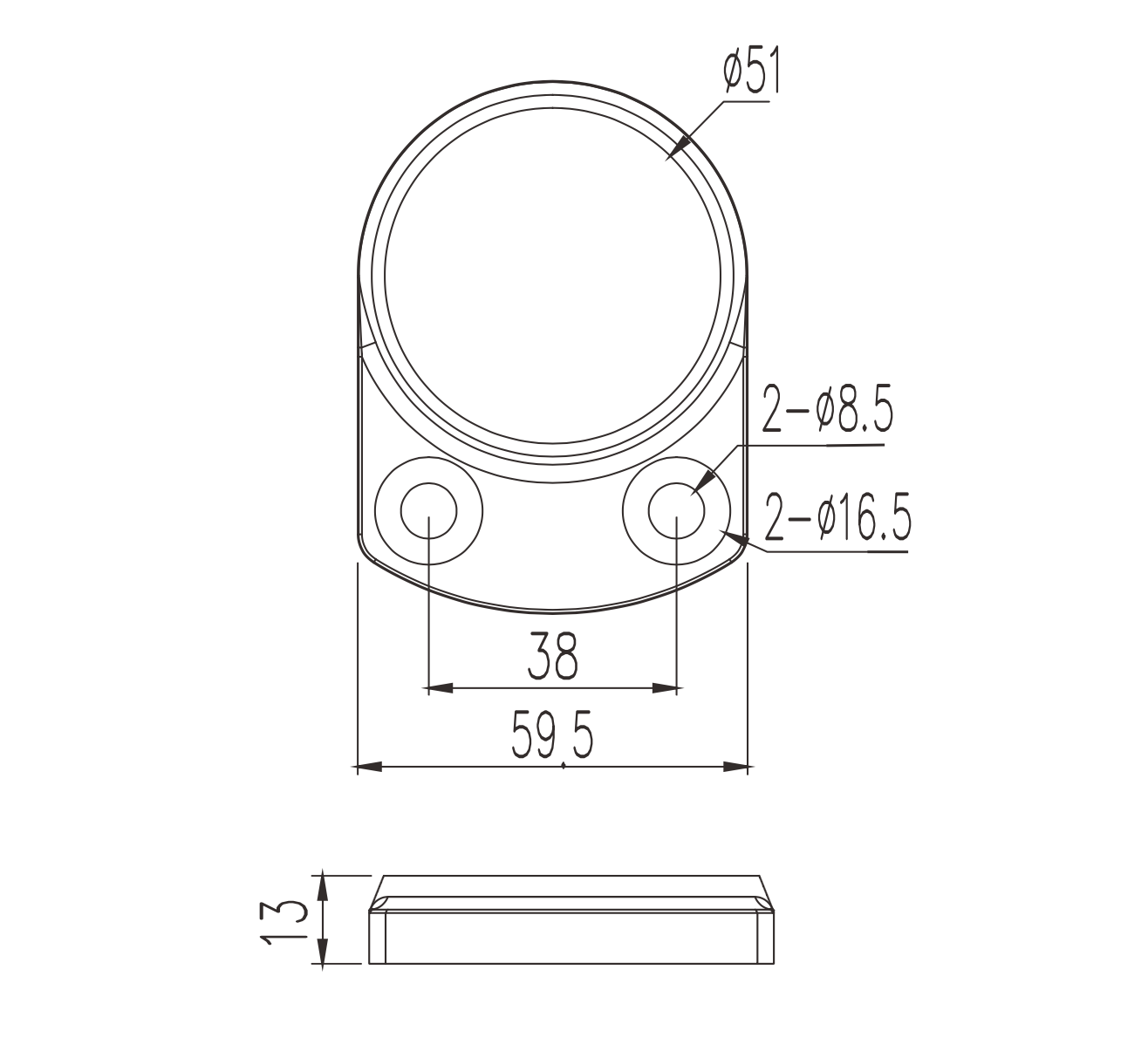 Ø50.8 mm round rail meeting ADA grasp requirements.
