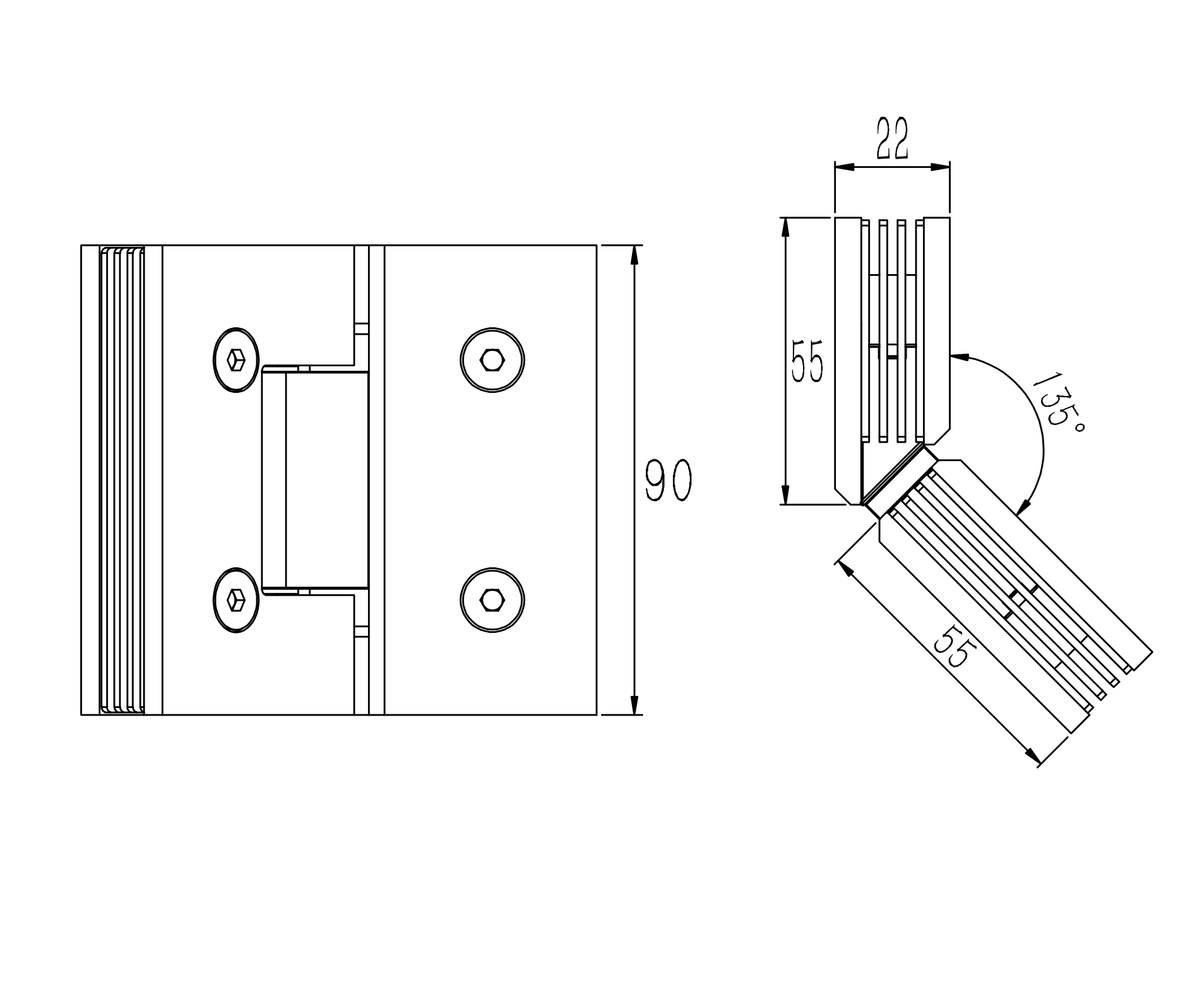 135° glass to glass shower hinge