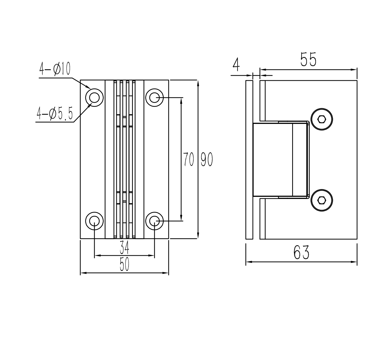 - Solid Brass, Glass to Wall 90° Shower Screen T Shape Hinge