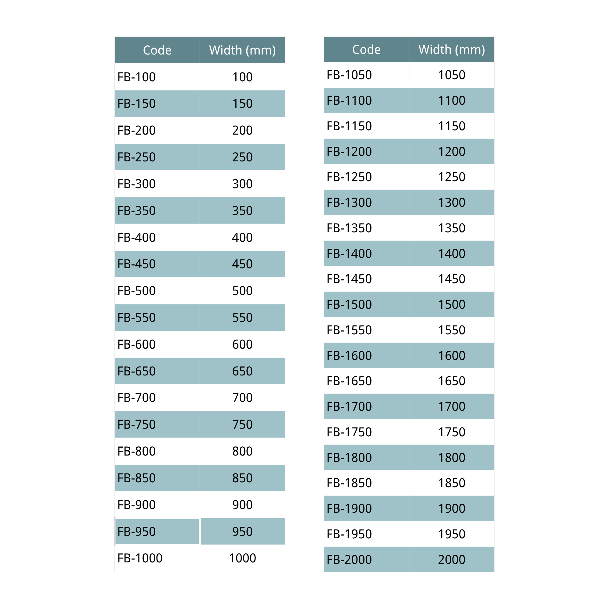 - •Available Sizes for Stock Panels: Ranging from 100 - 2000mm ( in 50mm increasement)