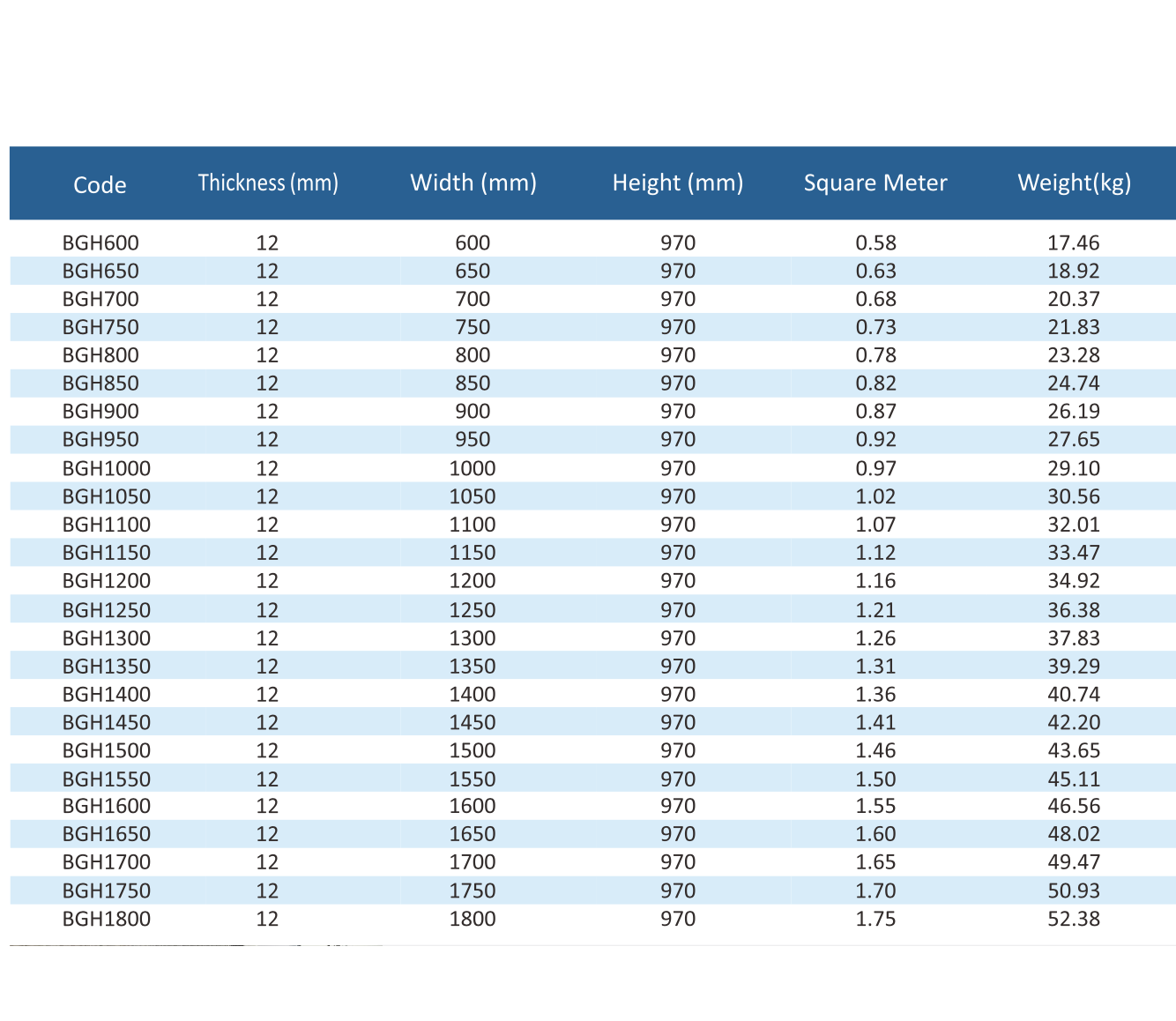 - •Available Sizes for Stock Panels: Ranging from 600 - 1800mm (in 50mm increasement)