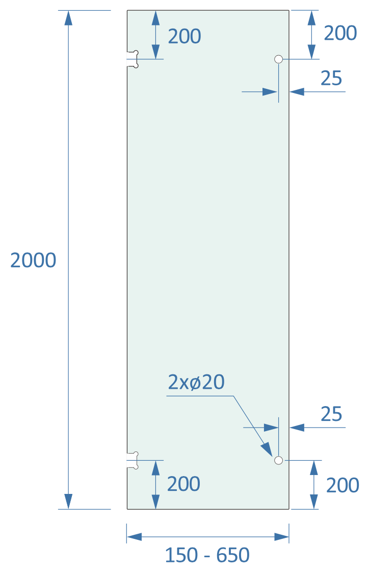 - •Hinge Panel with 2 Holes & 2 Cut Outs, Available Widths: 150-650mm (5mm increments)